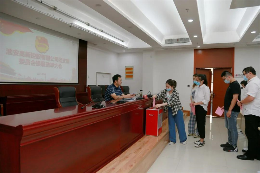 隨后,五名團支部委員召開(kāi)委員會(huì )會(huì )議并投票選舉,孫岑岑同志當選為淮安高新控股有限公司團支部書(shū)記。