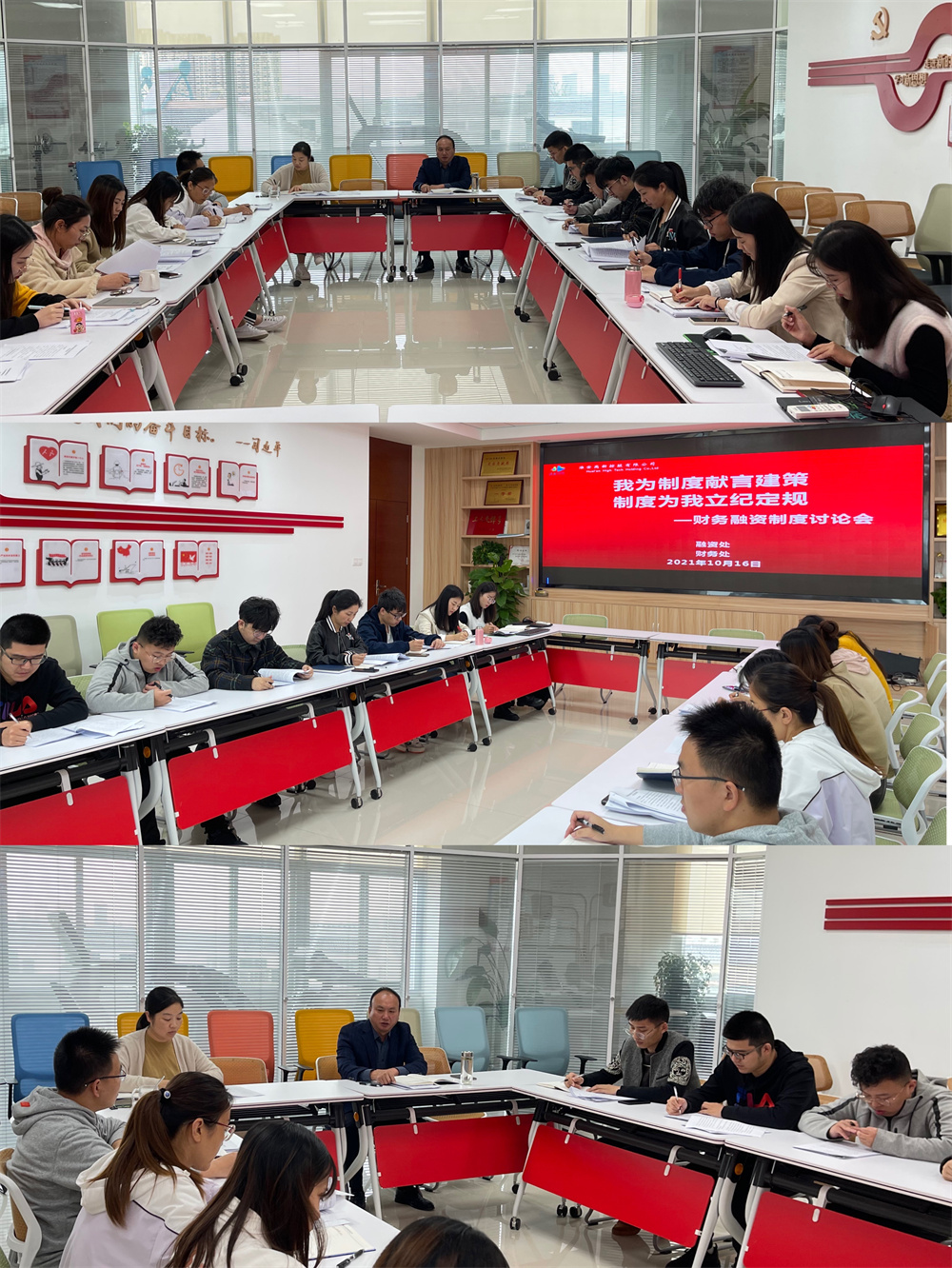 10月16日下午,為進(jìn)一步完善財務(wù)融資管理制度,提高員工懂制度、用制度和守制度的能力和意識,財務(wù)處和融資處利用周六休息時(shí)間,共同組織召開(kāi)了主題為“我為制度獻言建策,制度為我立紀定規”沙龍活動(dòng)。會(huì )上,首先,由潘久文介紹了相關(guān)制度制定修改背景和總體情況;其次,分別由付娟領(lǐng)學(xué)融資及擔保管理制度、張前領(lǐng)學(xué)公司財務(wù)管理制度修訂草稿及情況說(shuō)明、陳路遙領(lǐng)學(xué)委派財務(wù)總監管理辦法草稿、袁玥領(lǐng)學(xué)控股子公司財務(wù)管理制度等。最后,結合前期公司領(lǐng)導、中層人員提出的相關(guān)建議和參照全市其他市、縣平臺公司財務(wù)制度建設情況,大家對三項財務(wù)制度進(jìn)行了熱烈討論,紛紛談思路、提建議、出點(diǎn)子,集思廣益。通過(guò)本次活動(dòng),全員靜下心來(lái)集中學(xué)習、現場(chǎng)研討交流,讓大家廣泛參與制度制定、修訂和學(xué)習工作,旨在一是努力提高制度生命力,二是努力提高全體員工的思考力,三是努力實(shí)現制度完善和隊伍鍛造雙目標;四是加強財務(wù)、融資兩部門(mén)人員和工作融合力度,努力實(shí)現“1+1大于2”的效果。