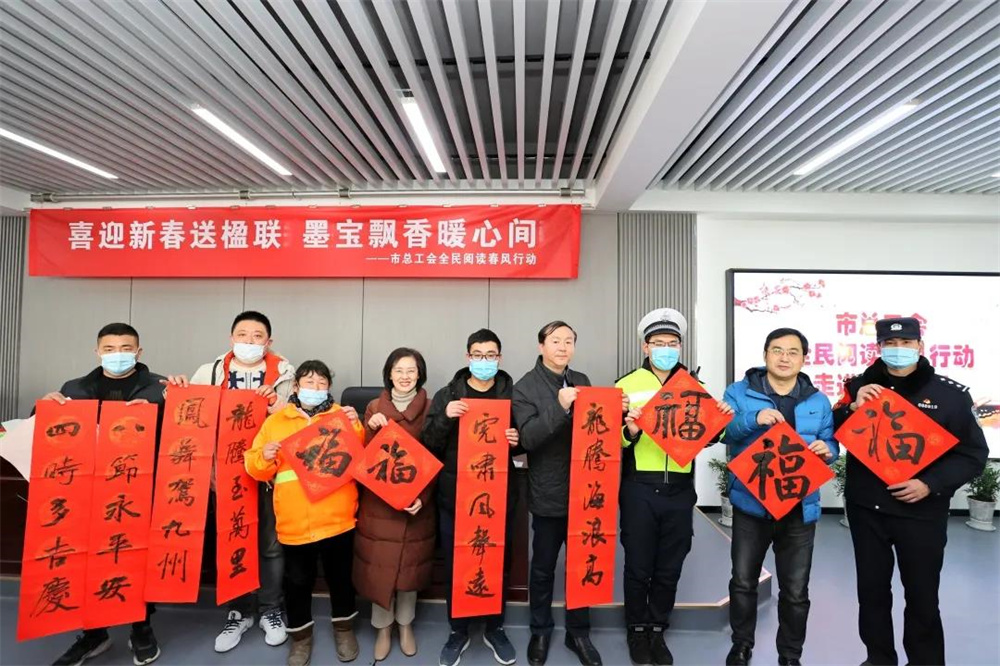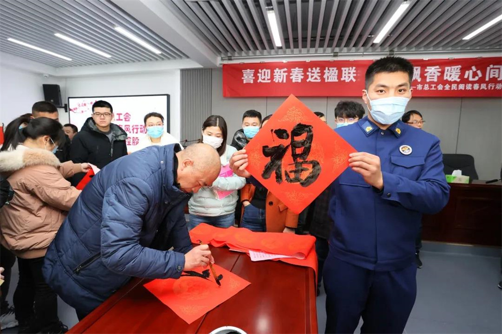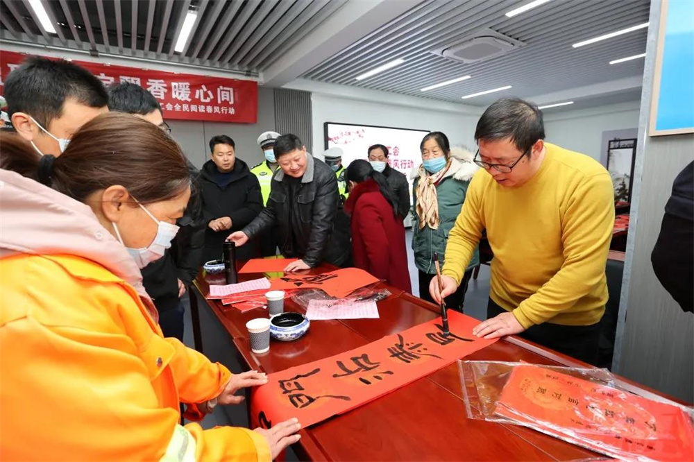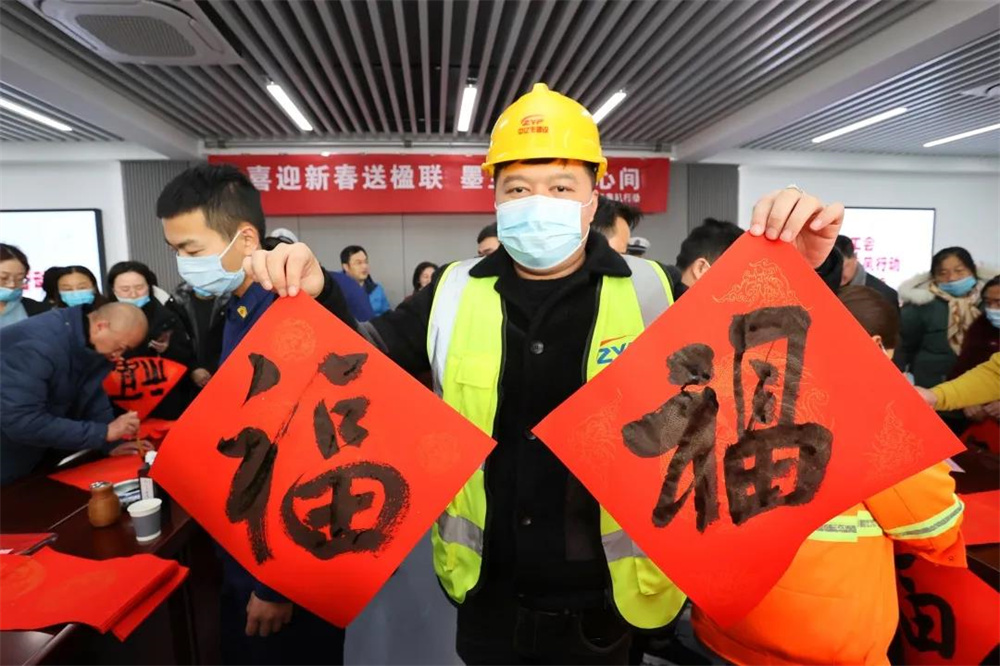 根據市總工會(huì )“喜迎新春送楹聯(lián) 墨寶飄香暖心間”送春聯(lián)活動(dòng)的安排,高新控股公司組織黨建樞紐聯(lián)盟成員在基地舉辦了正式揭牌后的第一場(chǎng)活動(dòng)。市總工會(huì )、公司領(lǐng)導班子、文化宮等相關(guān)領(lǐng)導攜十位書(shū)法家在現場(chǎng)潑墨揮毫,大家滿(mǎn)懷祝福之情,寫(xiě)下了一幅幅飽含美好祝福的春聯(lián),贈送給高鐵商務(wù)區的農民工、環(huán)衛工等建設者們。