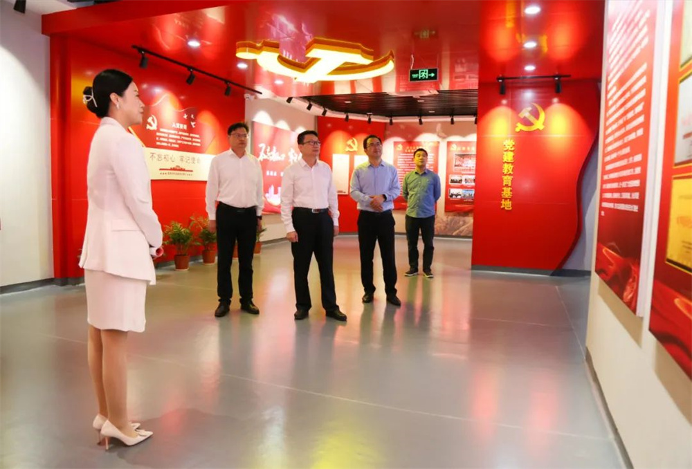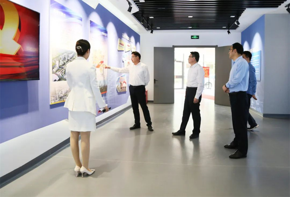 正式參展前,在公司黨委書(shū)記、董事長(cháng)、總經(jīng)理朱正國以及副總經(jīng)理余潤的陪同下,市文聯(lián)副主席、市書(shū)法家協(xié)會(huì )主席姜筱卉參觀(guān)了公司黨建教育展廳,進(jìn)一步了解高鐵商務(wù)區及公司發(fā)展概況,感受濃郁的黨建文化氛圍。