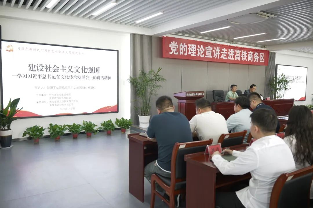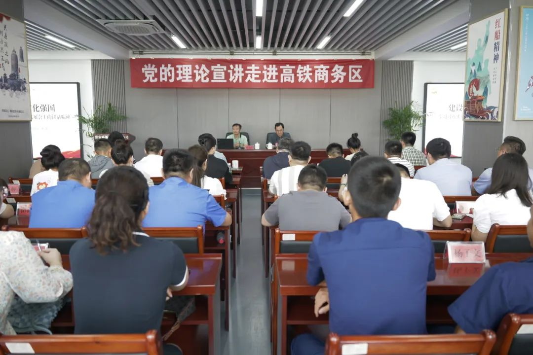 為深入學(xué)習貫徹習近平新時(shí)代中國特色社會(huì )主義思想和習近平總書(shū)記考察江蘇重要講話(huà)重要指示精神,強化黨員干部思想理論武裝,以深入開(kāi)展主題教育為契機,堅持學(xué)思用貫通、知信行統一,不斷豐富宣講學(xué)習形式,推動(dòng)黨的理論宣講進(jìn)企業(yè)、潤人心、強實(shí)效。7月27日上午,淮安高新控股有限公司以及高鐵商務(wù)區樞紐黨建共建單位部分員工代表齊聚一堂,共同參加本次宣講活動(dòng)。